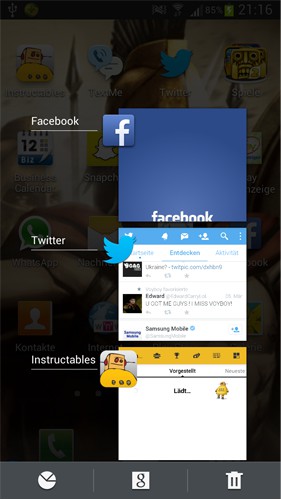 - Press and hold the Home Button of their Smartphones down for long. Then all the Background running Apps are displayed.