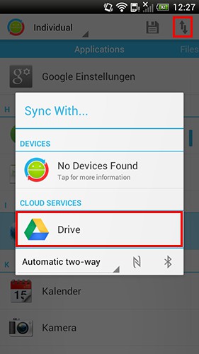 - Now go up the right icon with the two arrows. Now, select the Cloud Service where your game scores to drop. The App syncs your data.