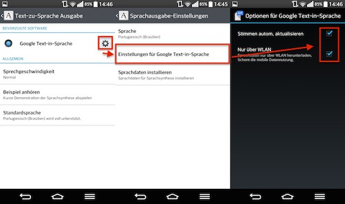 - Select the last Option "Text-to-speech output". See there next to the Option "Google Text-to-speech" a Gear.