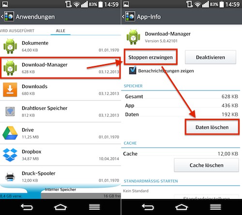- Select it and tap on "force Stop". You should then delete the "data", so that the downloaded data fragments are removed and the voice Download does not automatically start.