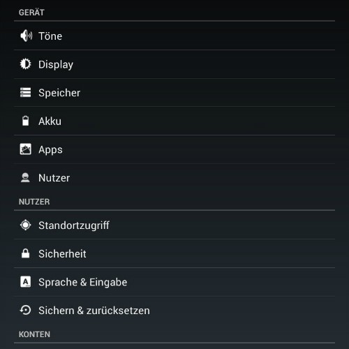 - Open your Android Tablet's "settings" and select the category "device" the Option "user".