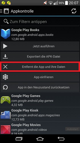 - You select "the App and its data", in order to remove the Play Books App from your Smartphone.