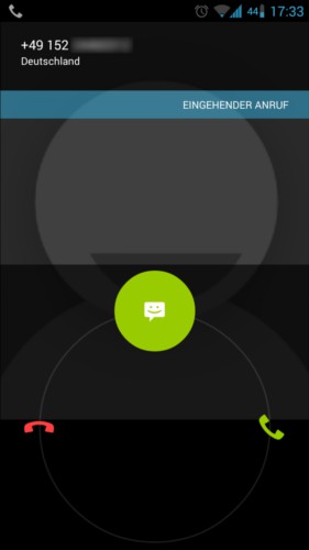 - When there is an incoming call, you should be able to now choose on the Display in addition to red and green handset button, a SMS icon. Here you can see the pre-formulated answers, you need to tap now. As a result the call with a SMS will be answered.
