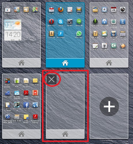 - Empty home screens you can delete a small "x" in the upper left corner of the screen in the Overview.