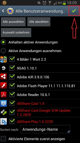 If you only want to secure certain Apps on your Android Smartphone, you can select the affected applications manually.