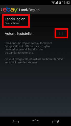- The choice of Countries is now no longer grayed out. With a tap of the Finger on the button, you can specify the country of your choice.