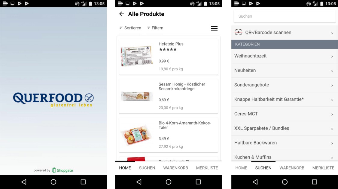 Cross food the App to the online shop of the gluten-free food supplier.