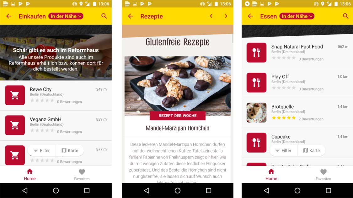 - Online store: The App is the counterpart to the eponymous online shop. With it, you can order a gluten-free products in the Shop.