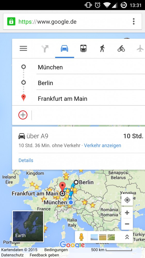 - Enter the first destination and tap on "route planning". The small grey cross you can then enter another destination.