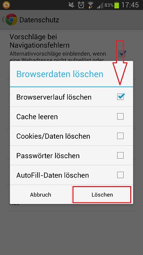 - You put in the Pop-Up window to delete the check mark next to "browsing history" and confirm with "Delete".