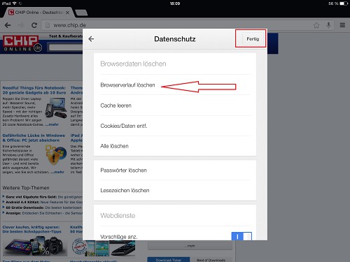 - Tap "Advanced" and on "privacy" and then the grey Button with the inscription "clear browsing data".