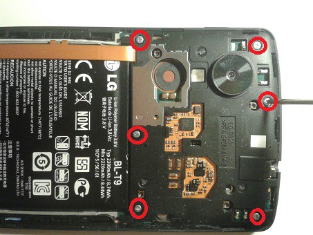 - Paste the speakers in the Nexus 5 a and screw it in place with the four screws.