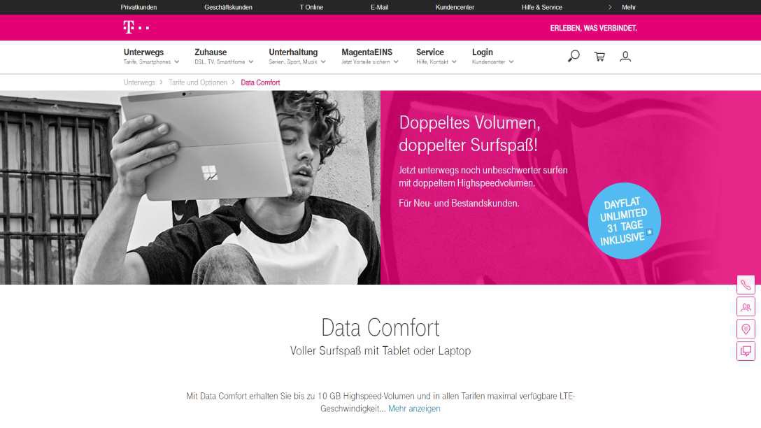Data Comfort M Tariff – data-volume book