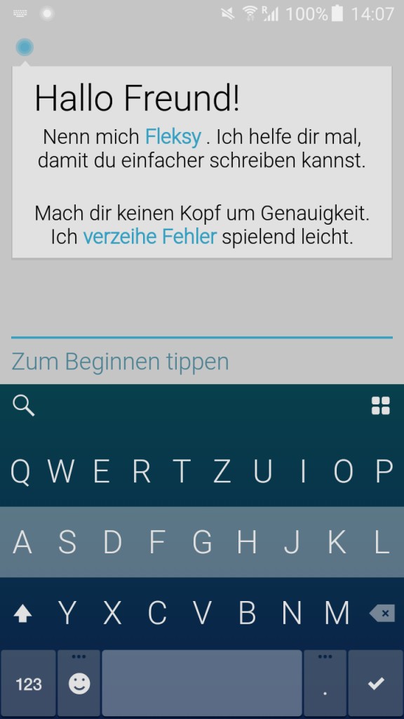 - With the App, it is even possible to type blind. The word recognition of Fleksy keyboard is excellent and ideally suited for quick Writing.