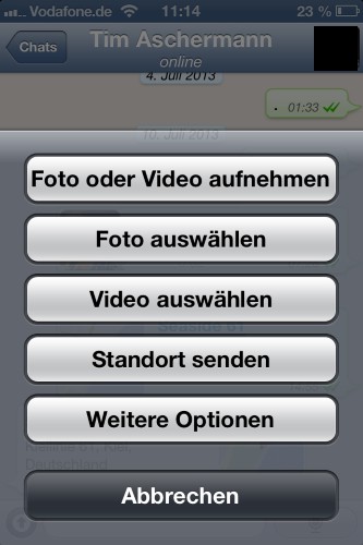 - Send files: Via WhatsApp you can send photos, Videos, contacts and your current location. To do this, click on the iPhone on the bottom left next to the text box on the arrow under Android on the paperclip.