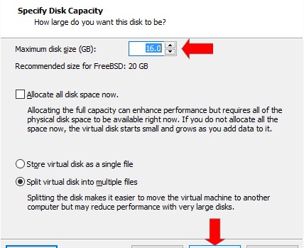 - As the size of the hard disk, you should select a minimum of 16 GB to have enough space for Apps, programs and games. Go again on "Next".