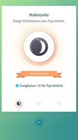 - Black belt: Catch 10 Pokémon with the type "fight" for Bronze, 50 for silver and 200 for Gold.
