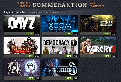 Your desire should be to find game, not in the day - and the lightning offered, you can hope for hefty discounts: Almost all the Steam games are reduced at the time of the Summer Sales in the price. These discounts are not as strong as in the special offers - but you can expect a 20-30 percent Savings to the original price.