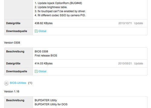- Based on the manufacturer and the model designation you can now browse to the Homepage of the Mainboard manufacturer for a BIOS Update. Also look for a matching version number voting.