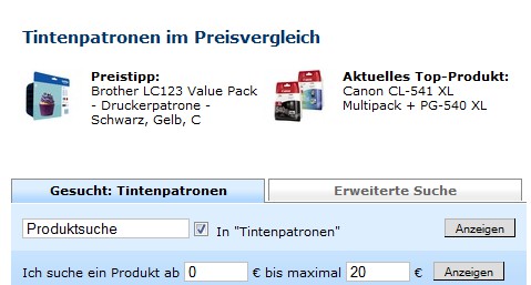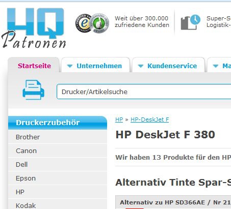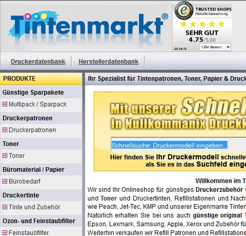 - Product search and offer: If you specify in the search box on the home page, your printer, you will be routed directly offered to all appropriate ink and Toner. The assortment contains in addition to the original cartridges and Refilled cartridges also offers the Refilled market leader Jet Tec. In addition, Multi-inks-packages enable a reduced price.