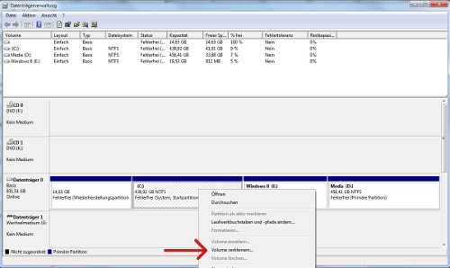 - Click with the right mouse button on the desired drive. Select the [zoom Out] and wait until the System has prepared the hard disk.