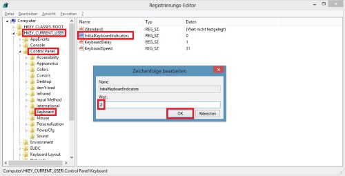 - Then set its value to "2" and click "OK". After the next restart of the number block will be activated automatically.