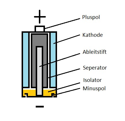 - By a Seperator, for example, from a paper-like material, of the cathode separated from the negative electrode, the Anode is located. It is made of zinc.
