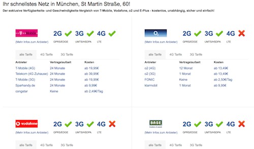 - In the case of Telekom, Vodafone, O2 and E-Plus , you can access the pages by entering the address of the network availability check.