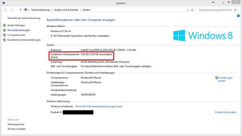 Windows: RAM size display
