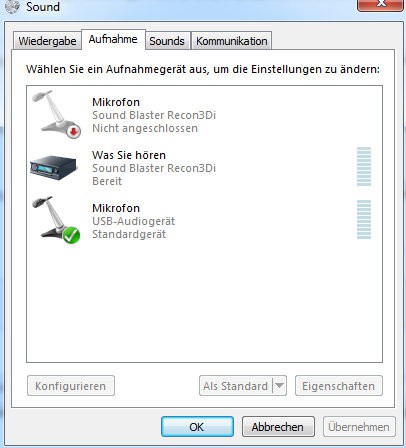 - You will now see a list of all the microphones that are available to you (see Screenshot). Your microphone should be on it, then click with the right mouse button, and then click "Activate" and on "set As default device".