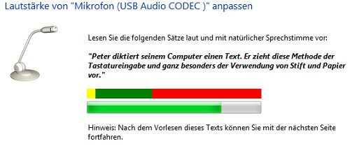 - In the following window you can speak the Text displayed and then click on "Next". Your microphone is now set correctly.
