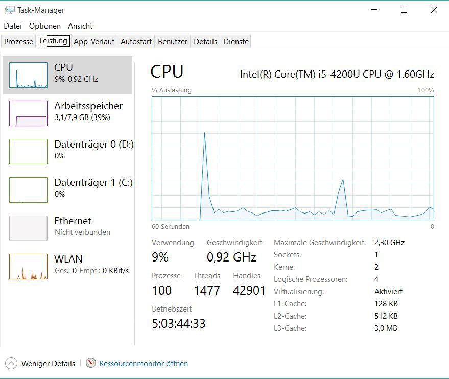 In the case of processors, manufacturers provide only the maximum clock rate. Your computer needed but rarely use the full Power of the CPU, which is why the stroke varies all the time. Using the Task Manager in Windows 10 you can read their current value: