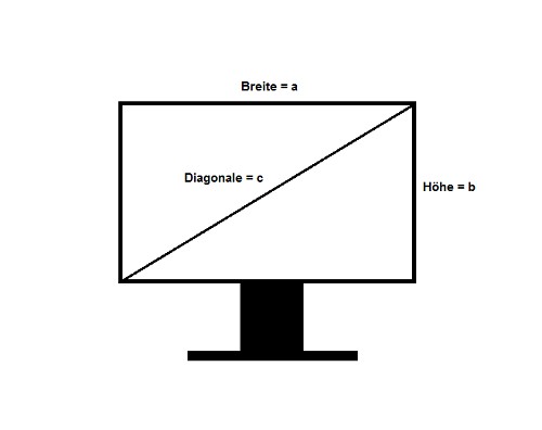 - Your screen is, for example, 65 cm wide and 45 cm high, the formula is: "652 + 452 = c2" or "4225 + 2025 = c2". Now you need to count only the Numbers "4225", and "2025" and the root of it. The end result is 79.1 cm. If you are not in your head calculate, you can easy a Online Pythagoras calculator use.
