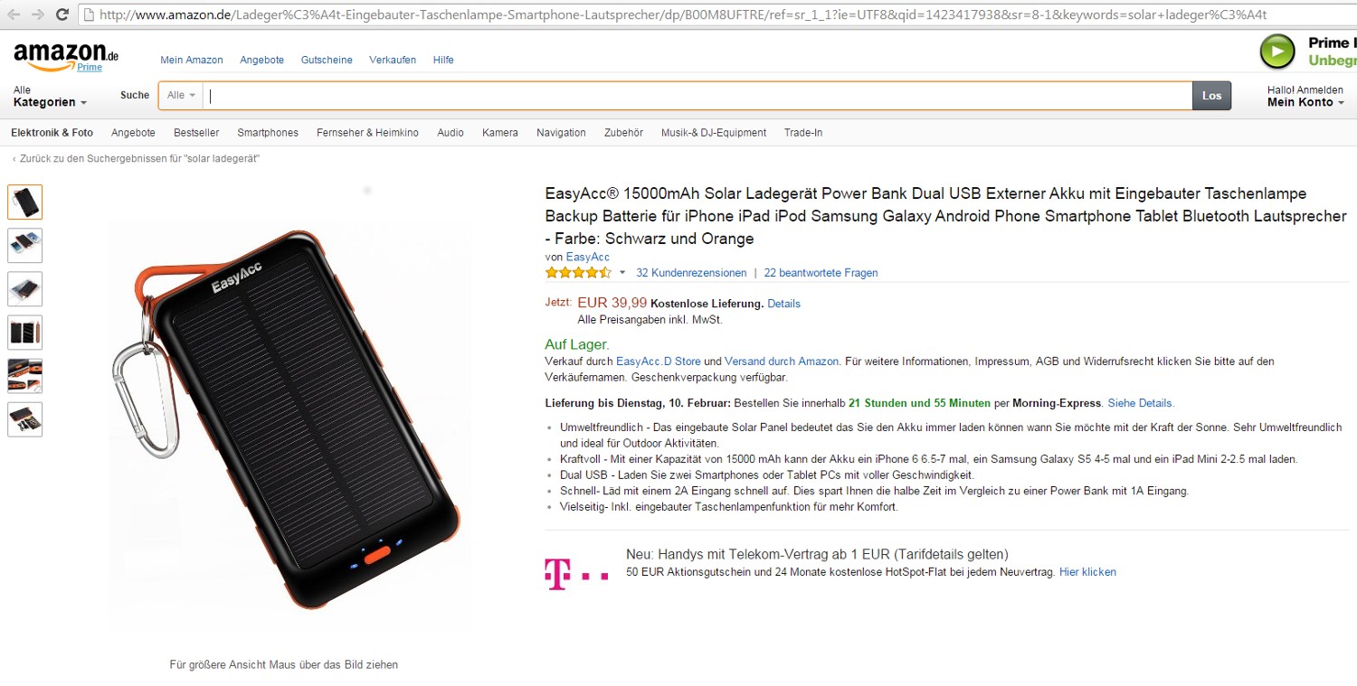 - Price: With almost 150 Euro is the Sunload Solarclaw the most expensive device in our best of list and only for the real Outdoor enthusiasts.