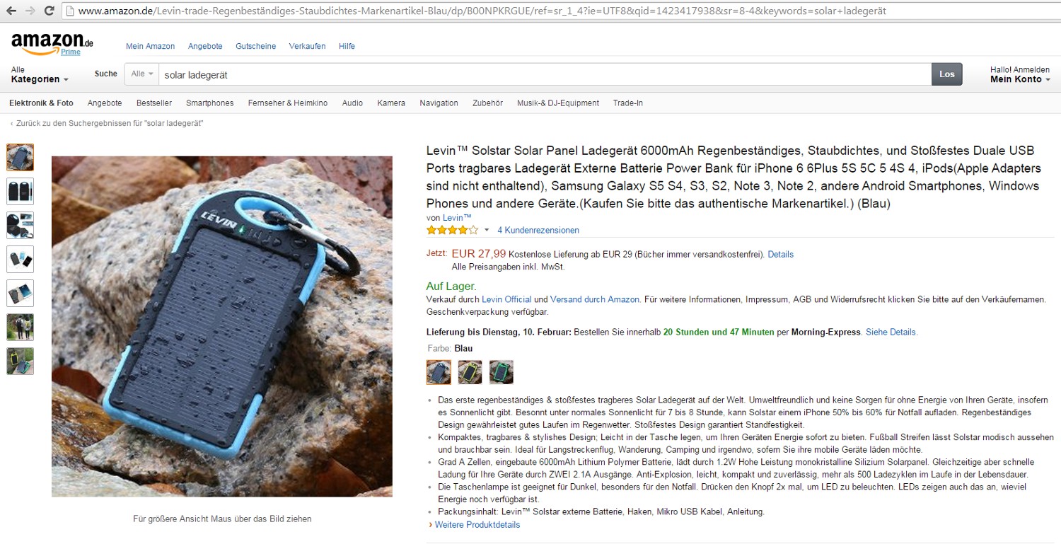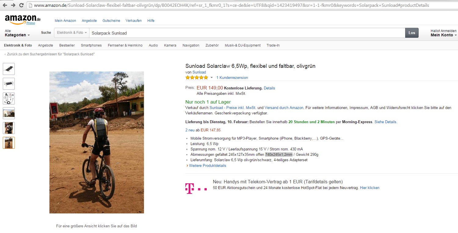 - Battery capacity: Unfortunately, the Sunload Solarclaw dispensed with a built-in battery. You can not retrofit, although at extra cost, necessary in the light of the great Solar-Panels, but.