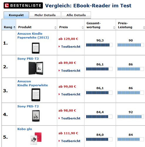 The judgment of the tester seems to be clear: With a total score of 1.6 ("Good"), Amazon's Kindle Paperwhite the test winner of the test. But a look at the Test revealed the Details of a weak point in the first place. The Details: