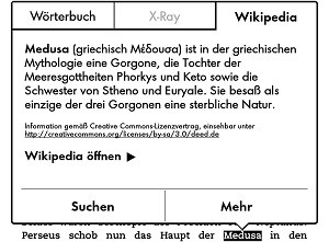 When reading, you can also hold a word or a name is clicked, a so-called "Smart Lookup window" menu. There you can read information about the term either from the dictionary, X-Ray or Wikipedia. Smart Lookup also identifies the type of the term and adjust the Tabs accordingly.