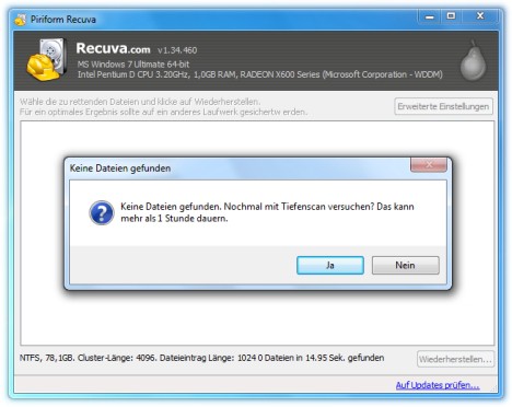 - If no data is found, automatically a Dialog box will ask you after a deep scan (see image). If you want to run it, because much more data can be found.