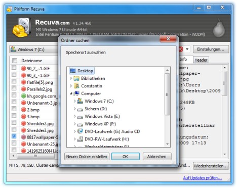 You have marked everything to your Liking, click on "restore". Now you will have to specify a storage path (see image). After the rescue of their rescued files can be opened again easily.