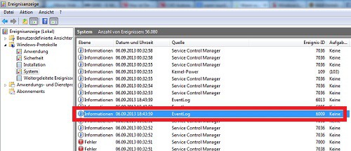 - Click on the Home Button (formerly "Start") and type in "eventvwr". So you can open the "result display".