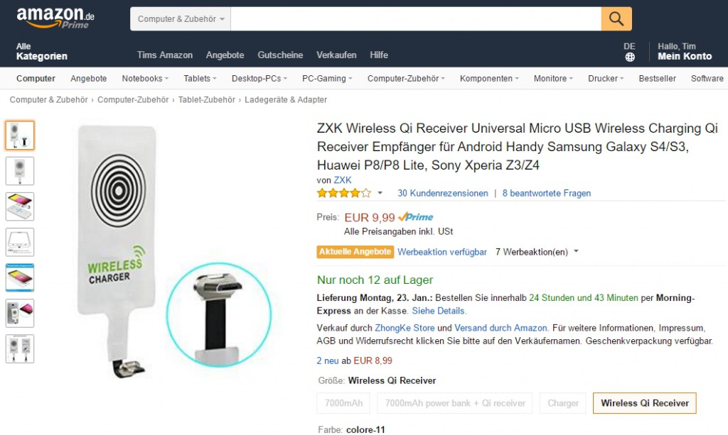 - Supports your Smartphone, the wireless Charging is not out of the house, you can use the function via a so-called Qi-Receiver upgrade. This is a thin Qi-Mat with a USB or Lightning connector.