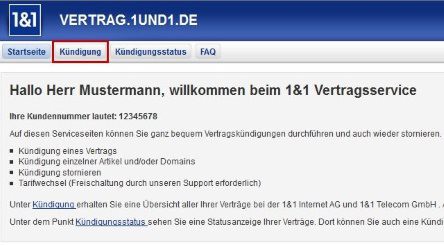 The cancellation page of 1&1