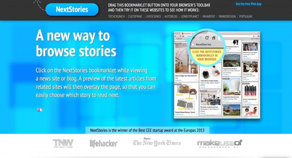 - As an Alternative to StumbleUpon next stories is recommended in any case and offers just for avid readers with an enriching experience. You can use the Bookmarklet from next stories download here and directly use.