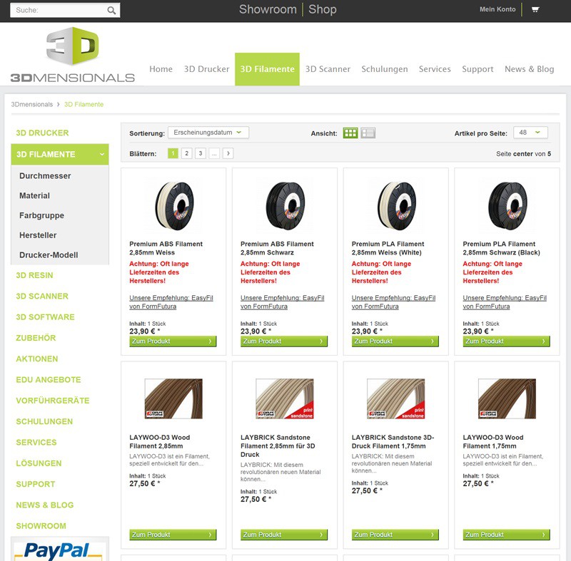- 3Dmensionals: the Online-Shop of "3dmensionals.de" has an extensive range of accessories for your 3D printer. On the Hotline you can get during the week on request for local rate advice.