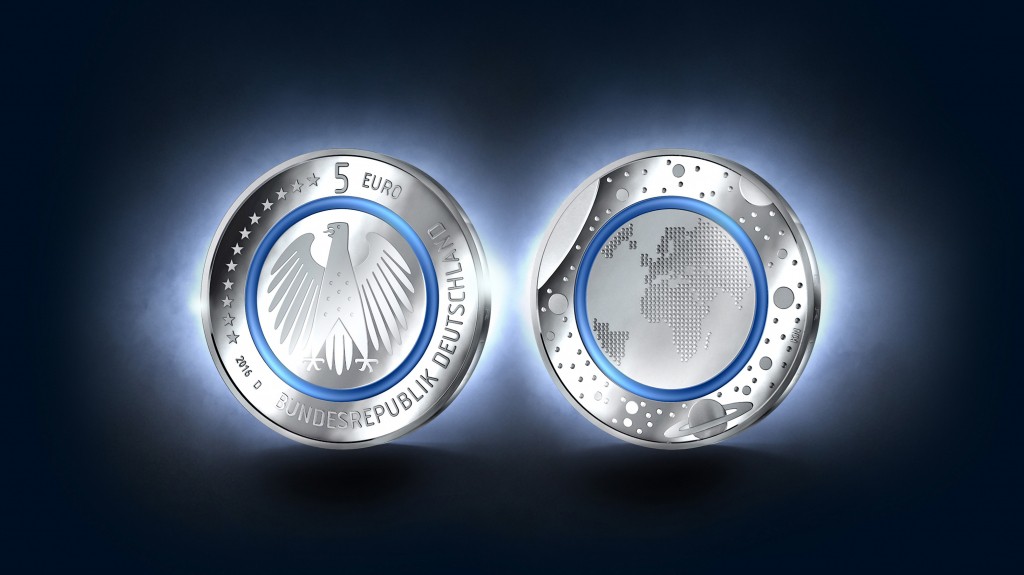 The current 5 Euro coin as a collector's-Edition (source: press picture, © Federal office of administration © Agency: leadcom.de)