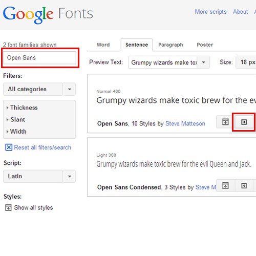 - Now, select which Styles of the Font you wish to use. Recommended are "Normal 400, Normal 400 Italic" for italic fonts and "Bold 700" for fat texts. Too many Fonts, the load time of the Website may be too high. In the field below to specify which character sets you need in the normal case Latin suffices here"".