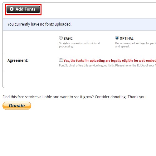 - Open the page Webfont Generator.