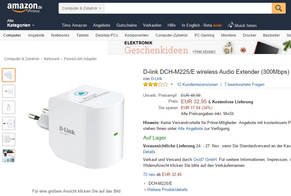 - AirPlay-Adapter: The best and cheapest way is with an Adapter. This is simply plugged into the wall outlet, and via Wi-Fi with your Router and by cable to your music system connected. The Adapter is now accessible via Wi-Fi, and transfers the music directly to your plant. The following Adapter from D-Link costs around 33 Euro.