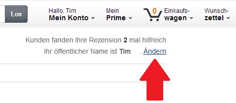 - At the top right you will see the text "your public Name is ...". Click on the "Change" Link (see image).