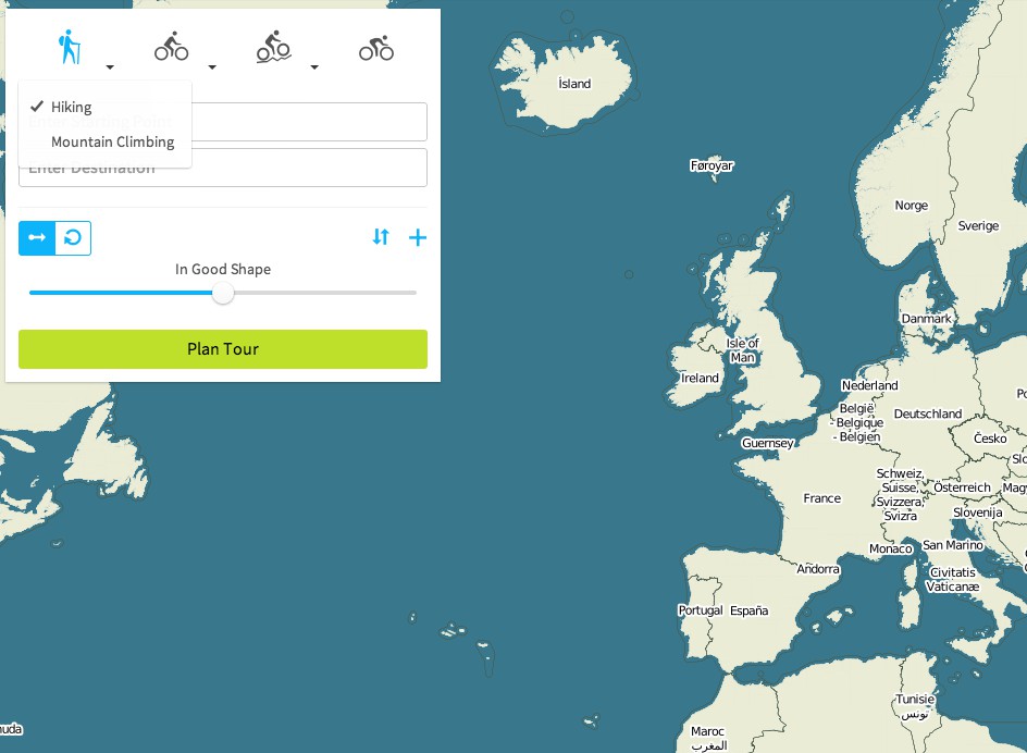 - After entering a Start and destination point, you can decide whether you want to design your card for experienced walkers or beginners.